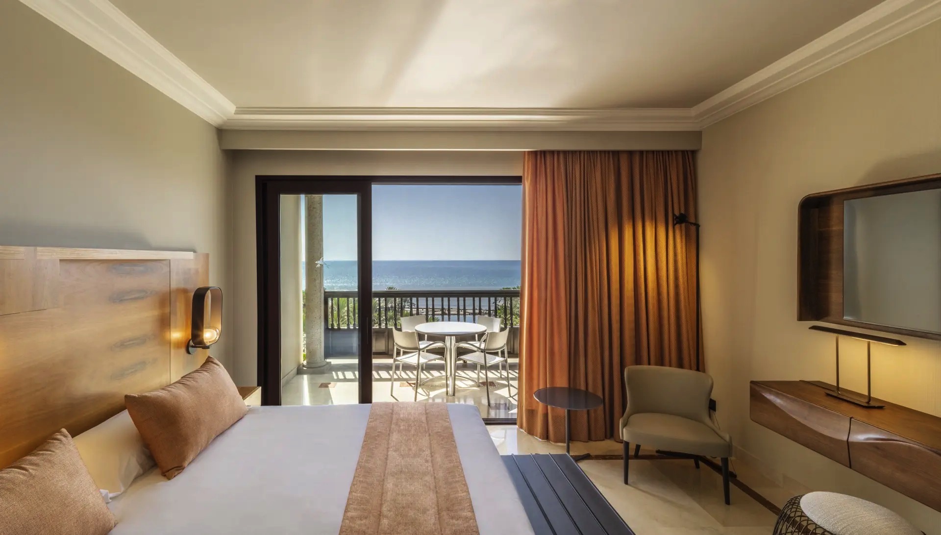 Wenn Sie die Tür öffnen, werden Sie von einer Welt voller Eleganz und Komfort begrüßt. Die mit erlesenem Geschmack eingerichtete Suite spiegelt eine Balance zwischen Modernität und der Essenz Gran Canarias wider. Sanfte Töne und hochwertige Materialien schaffen eine gemütliche Atmosphäre zum Entspannen und Genießen des Augenblicks. Die großen Fenster ermöglichen einen direkten Blick auf den Pool, lassen den Raum mit natürlichem Licht durchfluten und verwandeln jeden Moment in ein einzigartiges Erlebnis.