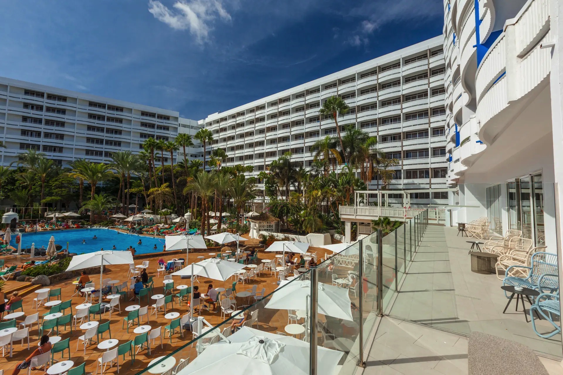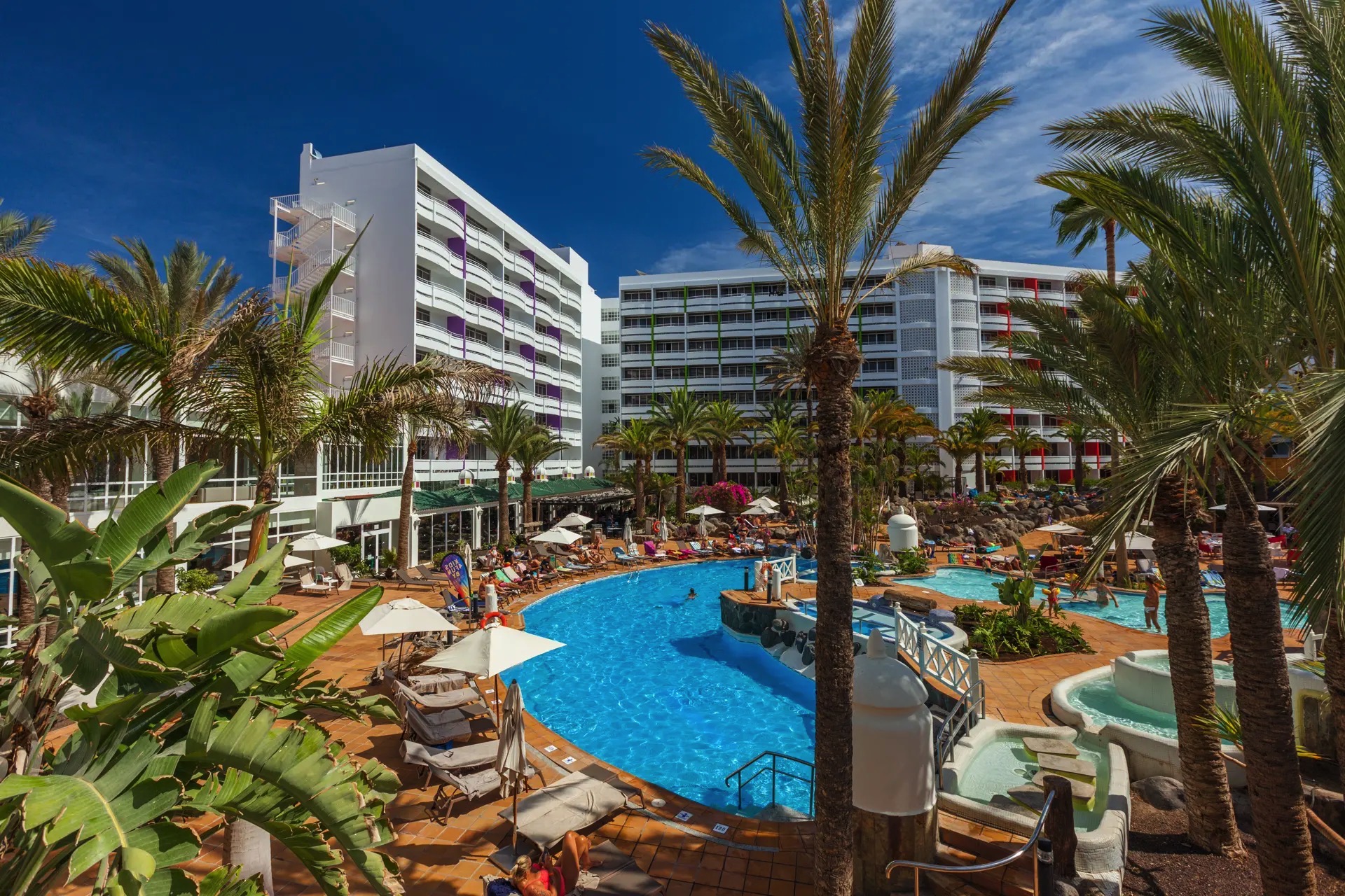 A la mañana siguiente, y después de dormir plácidamente, descubrimos un universo rebosante de vida y diversidad: espacios especialmente diseñadas para las familias, incluyendo una zona acuática infantil con un área de juego independiente; grandes y espaciosas piscinas en las que nadar y refrescarse del cálido sol de las Islas Canarias; y lugares exclusivos para mayores de 18 años, en los que el sonido del jacuzzi era lo único que se podía escuchar.