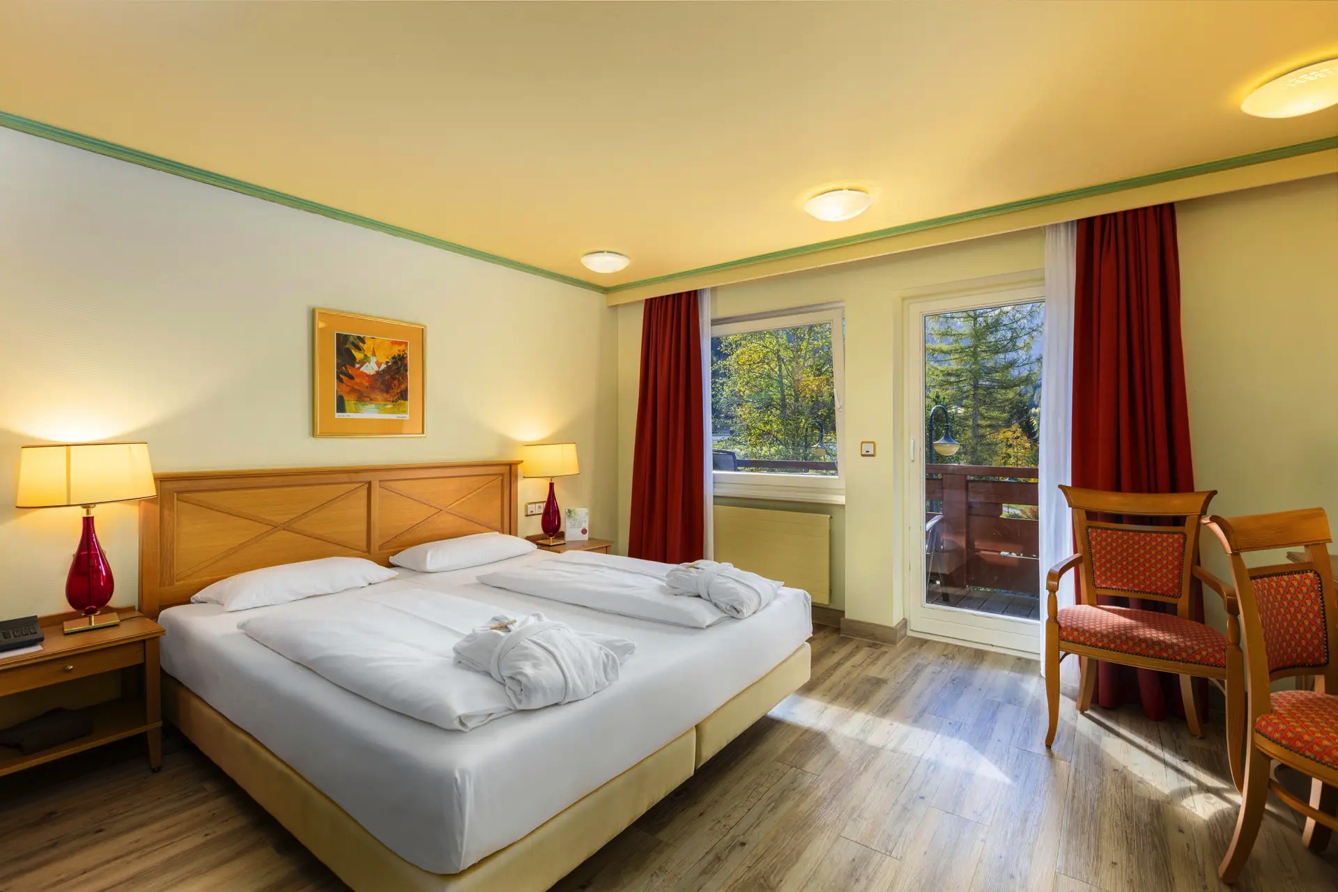 Tu habitación doble con vistas a la montaña en el IFA Alpenhof Wildental también incluye una caja fuerte personal, un minibar para esos tentempiés entre horas y wifi gratuito. Con la pensión completa de lujo incluida, podrás saborear deliciosos manjares en el abundante buffet de desayuno justo después de despertar y, por la noche, recargar energías con menús de alta cocina elaborados con ingredientes frescos en el restaurante del hotel tras un día de aventuras.